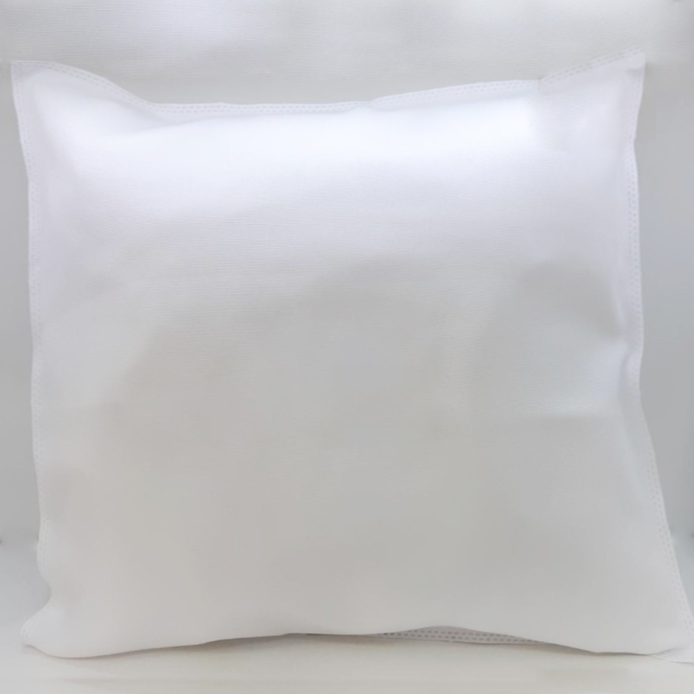 Almohada lista para sublimar con funda y relleno incluidos. Confección en tela tropical mecánica, diseñada para recibir sublimación con acabado de calidad.