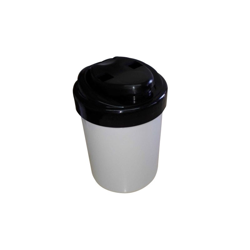 Material: Polímero blancoDimensiones: 13,5 cm alto x 8 cm diámetroEspesor: 3 mmÁrea de estampado: 21 cm x 9,5 cmSublimación: 180°C – 180 segundosAcabado: Brillante, resistente a rayaduras y lavaplatosIncluye: Tapa negra