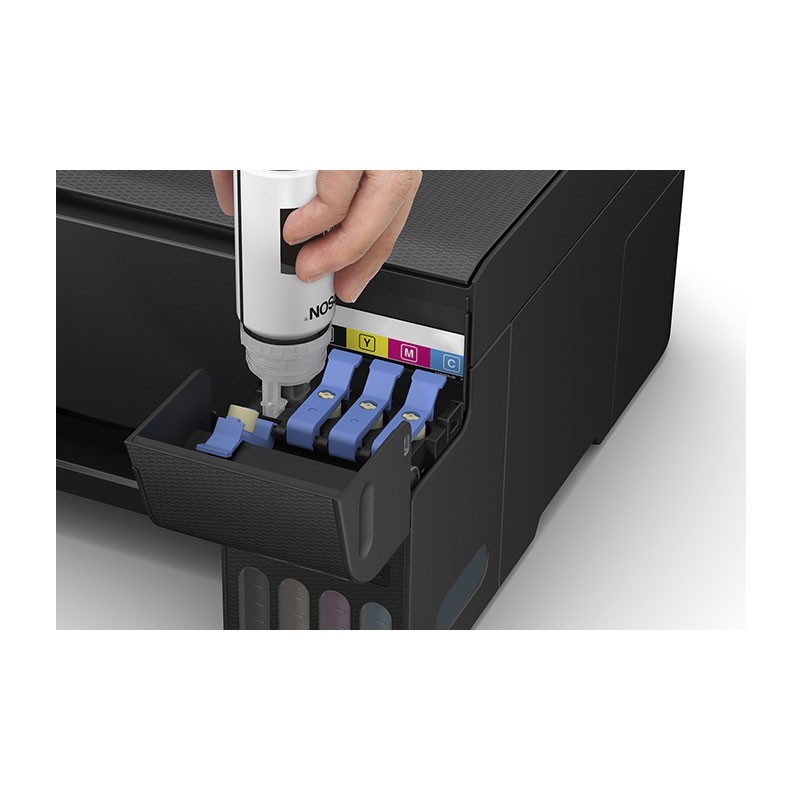 Función: Imprime, copia, escaneaVelocidad: 33 ppm negro / 15 ppm colorResolución: 5760 x 1440 dpiSistema: Tanques EcoTank de gran capacidadConectividad: Wi-Fi, USB, LAN inalámbricaTamaños: A4, Carta, Legal, sustratos especialesPeso: 3.9 kgCabezal: 4 colores CMYK MicroPiezo