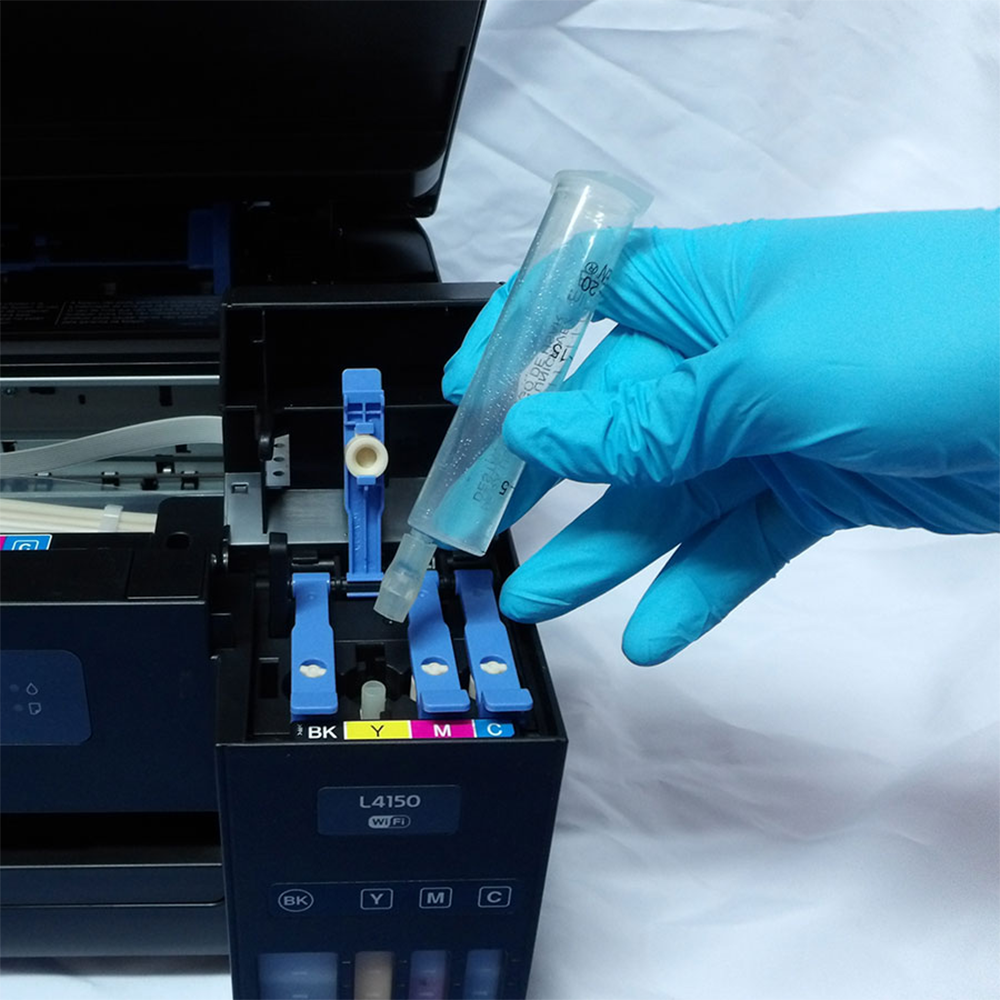 Kit completo para recargar tinta en impresoras Epson Línea L de forma segura y controlada. Incluye todos los adaptadores necesarios y guía de uso paso a paso.